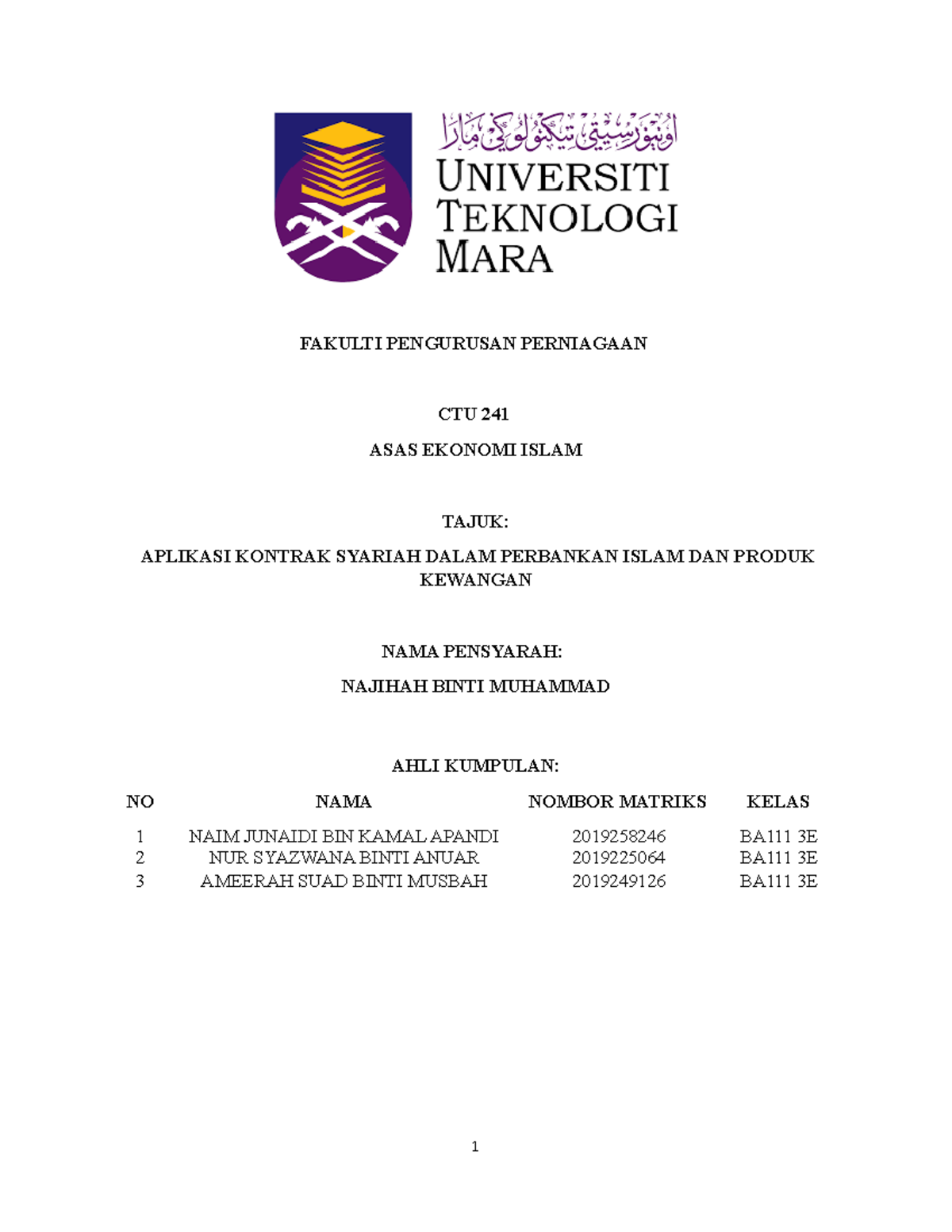 Kertas Kerja Assignment Fakulti Pengurusan Perniagaan Ctu 241 Asas Ekonomi Islam Tajuk Aplikasi Studocu